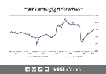 Julio Santaella, presidente del organismo, señaló en su cuenta de Twitter que en abril el Indicador de Confianza del Consumidor (ICC) alcanzó 42.4 puntos, mismo nivel que en marzo 2020 al iniciar la contingencia sanitaria. Sin embargo, todavía está por debajo del promedio de 2019, el cual fue de 44.8 puntos.