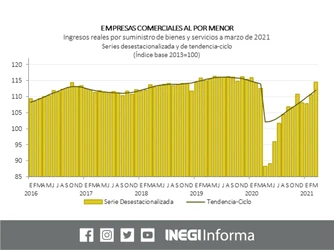 Julio Santaella, presidente del Inegi, dijo en su cuenta de Twitter que luego de verse afectados por la segunda ola de Covid-19 y bajar 6.1 por ciento mensual en enero, los ingresos por el suministro de servicios privados no financieros subieron 3.2 por ciento en febrero y 3.1 por ciento en marzo. Aún así, todavía permanecieron 5.6 por ciento anual por debajo de marzo del año pasado.