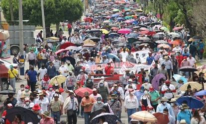 Ciudad de México. Profesores de la Coordinadora Nacional de Trabajadores de la Educación (CNTE), estudiantes normalistas y organizaciones sociales marchaban esta mañana desde el Ángel de la Independencia hacia el Zócalo capitalino para exigir la libertad de los estudiantes normalistas de de la Escuela Normal Rural de Mactumactzá, Chiapas, y condenar la agresión contra alumnas de la Escuela Normal Rural “Carmen Serdán” de Teteles, Puebla, así como demandar el cese de “todo acto de represión” contra los alumnos.