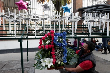 Los padres de niños que fallecieron en el incendio y de infantes que sobrevivieron, colocaron en el suelo un moño negro de tela, llevaron globos y flores y pusieron las fotografías de los niños. Prendieron a cada uno una veladora.