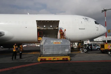 Esta mañana llegaron al Aeropuerto Internacional de la Ciudad de México (AICM), 585 mil dosis de dicha farmacéutica. Esta semana se recibieron un millón 881 mil 880 biológicos Pfizer-BioNTech.