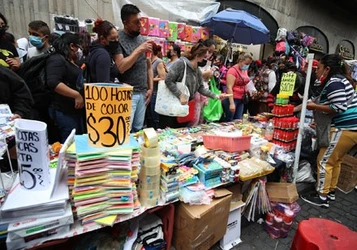Ciudad de México. A unas horas del regreso a clases presenciales comerciantes callejeros hacen su agosto en populosas zonas como la calle de Mesones donde ofrecen productos escolares a entre cinco y 10 pesos más caros, el mercadeo se registra sin ningún cuidado sanitario, todo mundo toca los productos y se registra un interminable intercambio de mercancías y dinero.