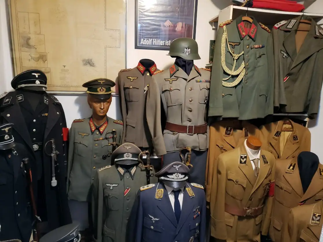 Las imágenes difundidas por la policía muestran que entre los cientos de objetos de referencia nazi figuran varias fotos enmarcadas y bustos de Adolfo Hitler.