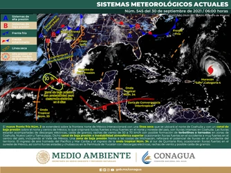El SMN vigila sobre el Océano Pacífico una zona de inestabilidad con 10 por ciento de probabilidad para desarrollar un ciclón tropical en 24 horas. A las 07:00 horas, tiempo del centro de México, se ubicó aproximadamente a 865 kilómetros al este-sureste de la desembocadura del río Suchiate, frontera entre México y Guatemala, con desplazamiento hacia el oeste.