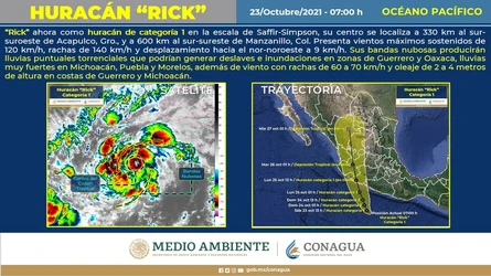 Ante el paso del huracán Rick, el presidente Andrés Manuel López Obrador afirmó que la coordinación nacional de Protección Civil, la Secretaría de la Defensa Nacional y la Marina están pendientes de cualquier eventualidad que requiera su participación.