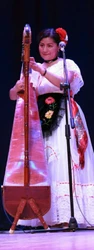 jovenzuelo con ropa de vestir: camisa y pantalones blancos, tirantes gruesos, sombrero negro de derby, botas negras, maquillaje de ojos vívidos y con bastón.