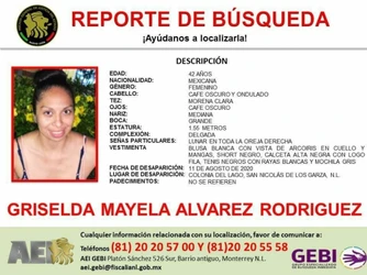 El reporte del Grupo Especializado en Búsqueda Inmediata (GEBI) y de la Comisión Local de Búsqueda de Personas señaló que García Vázquez salió de su casa la madrugada del 14 de octubre, domicilio ubicado en el centro de San Pedro Garza García.