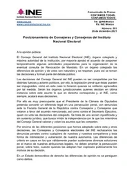 “Las consejeras y los consejeros han actuado y tomado decisiones en el marco de sus atribuciones y en ejercicio de la independencia y autonomía que la Constitución les otorga. El uso inquisitivo de las instancias penales y de procuración de justicia no es propio de una democracia”, comentó.