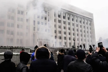 Al anochecer del viernes, en las calles de Almaty permanecían vehículos calcinados y charcos de sangre, aunque la circulación vehicular y peatonal se fue reanudando poco a poco, en tanto los camiones blindados de la policía patrullaban. La fachada del ayuntamiento, incendiado el miércoles, estaba ennegrecida y el humo seguía saliendo por las ventanas.