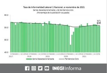 Al eliminar el factor estacional, la Tasa de Informalidad Laboral disminuyó 0.4 puntos porcentuales en el cuarto trimestre de 2021 respecto al trimestre previo. En cambio, la Tasa de Ocupación en el Sector Informal subió 0.1 puntos porcentuales en igual periodo.