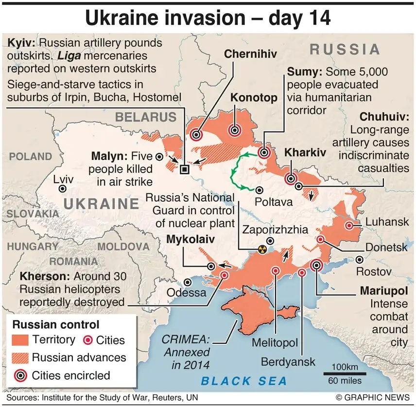 Rusia dijo que proporcionaría corredores humanitarios el miércoles para personas que huyen de Kiev y otras cuatro ciudades ucranias, según informes de informes de Reuters. Unas cinco mil personas fueron evacuadas de Sumy el martes, el único corredor en operación.Vía Graphic News