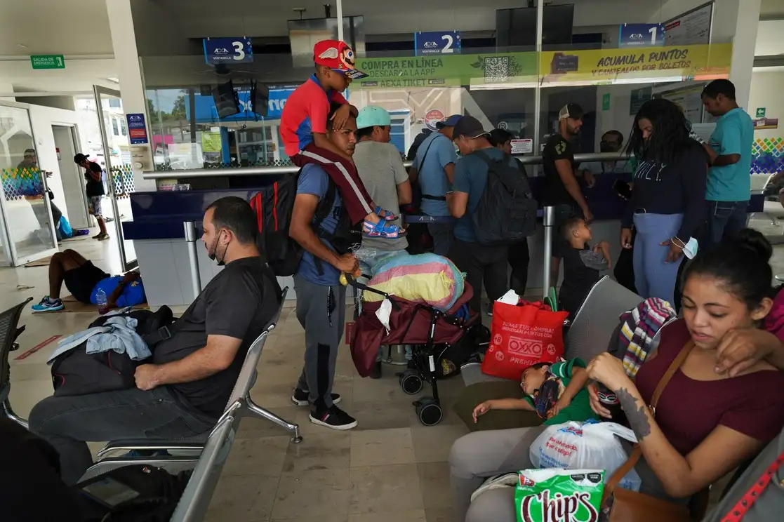 Migrantes arriban a la estación de autobuses en Huixtla, Chiapas, con el propósito de llegar a EU. Foto Ap