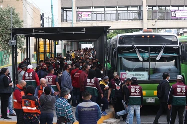En San Lázaro se registraron largas filas de usuarios, mismas que desaparecían en cuestión de minutos ante la llegada continua de autobuses de la RTP, que eran despachados en un tiempo promedio de tres minutos.