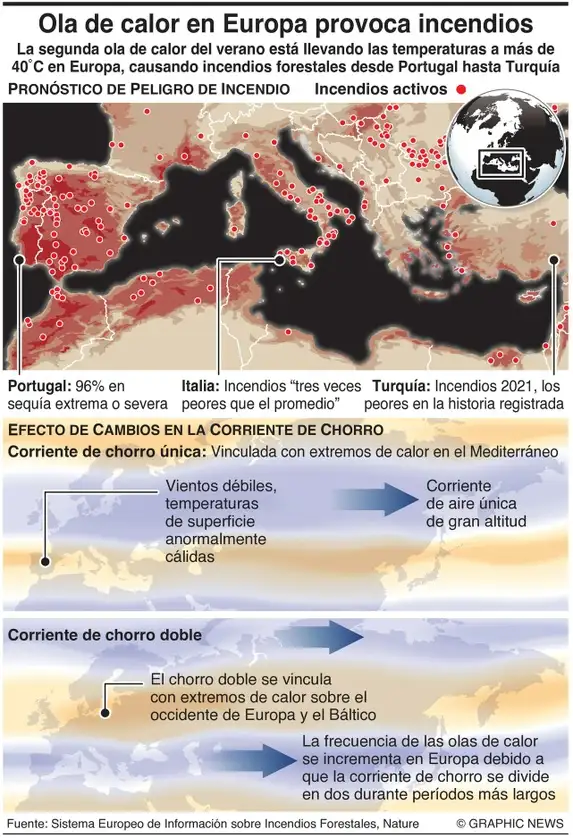 La temporada de incendios ha golpeado partes de Europa antes de lo habitual este año después de una primavera calurosa inusualmente seca que dejó el suelo vulnerable a las llamas y que las autoridades atribuyen al cambio climático.