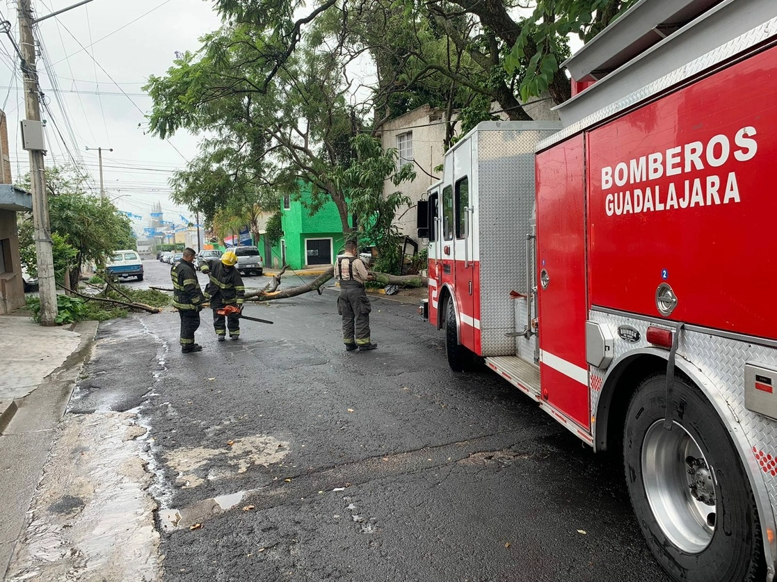 En Guadalajara varias avenidas se vieron inundadas alcanzando hasta 50 centímetros de altura, entre ellas las avenidas Gobernador Luis G. Curiel y Artes Plásticas, en la colonia Miravalle, además de encharcamientos en las colonias San Carlos y Dean, así como dos árboles caídos en varios puntos.