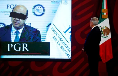 En la continuación de la audiencia inicial donde se definirá si el juez Marco Antonio Tapia Fuerte lo lleva a juicio o no por su presunta responsabilidad en los delitos de desaparición forzada, obstrucción para la procuración de justicia y tortura, relacionados con la desaparición de 43 estudiantes de la Normal de Ayotzinapa entre el 26 y el 27 de septiembre de 2014, Murillo Karam se presentó con el uniforme reglamentario de las personas privadas de la libertad, color beige.