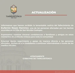 Protección Civil del Estado de México, policías estatales y autoridades municipales, informaron por separado, del accidente que ocurrió en Fuente de Piedra y Las Arenillas en Santiago Tepatlaxco, hacia donde se trasladaron equipos de auxilio y llevaron a la lesionada hacia un hospital de Traumatología del IMSS de Lomas Verdes.