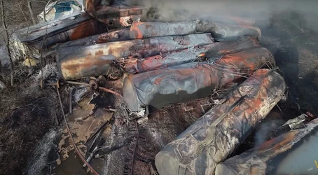 East Palestine. Las autoridades ambientales de Estados Unidos ordenaron detener temporalmente el envío de desechos contaminados desde el sitio del descarrilamiento de un tren en llamas a principios de este mes en el este de Ohio, cerca de la frontera con el estado de Pensilvania.