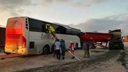 Policías reportaron que el accidente ocurrió alrededor de las cuatro de la madrugada, el conductor de la unidad de transporte de pasajeros conducía en sentido contrario y chocó de frente contra un tráiler, a la altura del centro comercial Punta Norte.