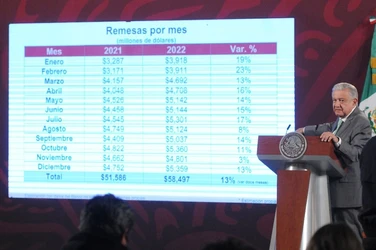 Este flujo de divisas hacia México, derivado de las transferencias familiares, alcanzó en el primer bimestre del año el 15 por ciento del total de ingresos por remesas que se recibieron a lo largo de todo 2022.