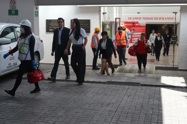 Ya en la calle, los participantes acataron las instrucciones de los coordinadores del simulacro designados por diversos establecimientos. Sigan haciendo línea y busquen el piso que les corresponde