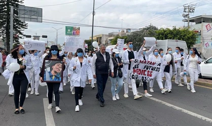Unos 400 estudiantes de la Universidad Latino y de otras instituciones de educación superior de Celaya realizaron una manifestación para exigir justicia por el asesinato de los universitarios.