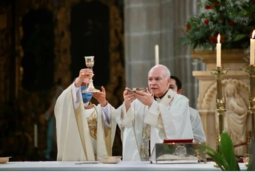 En la celebración eucarística, González González conminó a los asistentes a ser constructores de paz.