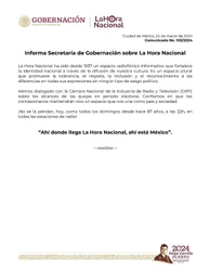 La queja aclara que “los concesionarios probablemente actuaron de buena fe, pero la autoridad que produjo los contenidos de La Hora Nacional, la Secretaría de Gobernación, sabía que a través de terceros se cometerían infracciones serias a la normatividad electoral y las indujo a ello, al no informales de esos contenidos político-electorales” que se transmitieron los días 3 y 10 de diciembre de 2023, y 14 de enero de este año.