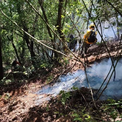 Los brigadistas realizaron tareas de sofocación en el lugar, lograron controlar las llamas y evitaron que el siniestro se convirtiera en un riesgo para la población.