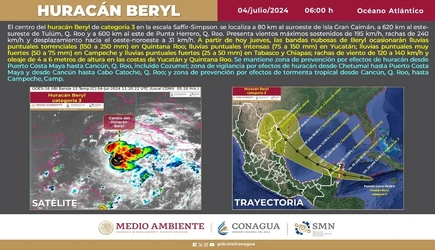 En un mensaje a los quintanarroenses, la mandataria estatal dio a conocer que Beryl llegará a Quintana Roo como un huracán categoría 2, con vientos de 175 kilómetros por hora (km/h) y rachas hasta de 215 km/h.