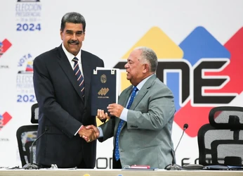 En las elecciones del domingo, Maduro, por la coalición Gran Polo Patriótico (izquierda), obtuvo 51, 2 por ciento de los votos, contra 44,2 por ciento logrados por Edmundo González, de la opositora Plataforma Unitaria Democrática (PUD, centro), según informó el Consejo Nacional Electoral.