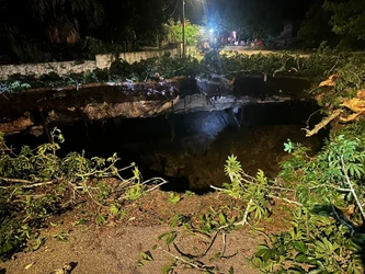 Un socavón de 10 por ocho metros de diámetro y dos de profundidad se formó debajo de una vivienda y provocó fracturas en la construcción de dos pisos al colapsar el drenaje de la calle Guadalupe I. Ramírez, en el pueblo de San Lucas Xochimanca, en Xochimilco, donde también se formó una oquedad de unos 30 metros cuadrados sobre el arroyo vehicular y parte de la banqueta tras la fuerte lluvia del lunes por la noche.