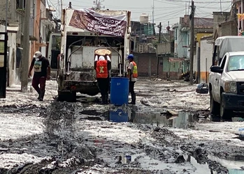 Chalco, Méx., El ambiente es desolador y triste al recorrer las calles de las colonias Jacalones y Culturas de México ahora que el nivel del agua bajó y es posible caminar sobre las banquetas. Este sábado aun hay puntos donde no dejan de brotar aguas negras del alcantarillado y algunas casas anegadas; por otra parte, la limpieza de viviendas y locales en donde ya está seco resulta una labor ardua.