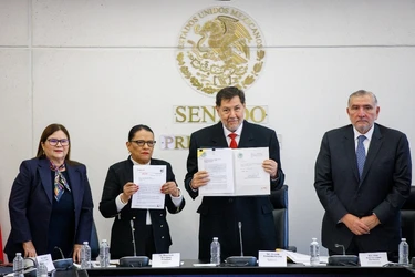 El morenista fue entrevistado luego de que la secretaria de Gobernación, Rosa Icela Rodríguez, entregó al Senado dos iniciativas de reforma para dar certeza a la elección de jueces y magistrados.