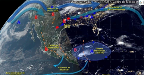 Este frente frío viene en interacción con la corriente en chorro polar, un canal de baja presión y el ingreso de aire húmedo procedente de la zona del pacífico.