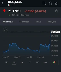 De ahí que el peso mexicano opera con una elevada volatilidad, pues en las operaciones electrónicas internacionales, la divisa mexicana alcanzó la tarde-noche de ayer un mínimo de 21.2924 pesos por dólar, regresando a niveles no vistos desde el 2021, para después mantener su cotización en el overnight de entre los 20.80 y los 21.10.