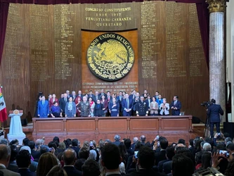 En la ceremonia del 108 aniversario de la promulgación de la Constitución Mexicana, la clase política, refrendó todo su respaldo. “Mucha presidenta, mucha presidenta”, se escuchó en el Teatro de la República. Una ceremonia donde destacó la ausencia de la presidenta de la Suprema Corte de Justicia de la Nación, la ministra Norma Piña, quien no fue invitada. En cambio estuvieron las ministras Lenia Batres, Loretta Ortiz y Yasmin Esquivel, cuya presencia destacó la titular del Ejecutivo.