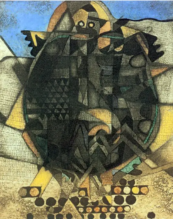 También fue notable su interés en los mitos de las culturas originarias. En sus trabajos juega con las imágenes del conejo y la Luna, conocida leyenda náhuatl, además de plasmar las formas de los caparazones de las tortugas.