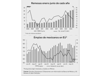De acuerdo con la última información presentada por el BdeM, de enero a septiembre, al país ingresaron 45 mil 681 millones de dólares por el concepto de remesas familiares, monto 5.54 por ciento menor si se compara con lo reportado en el mismo periodo del año pasado.