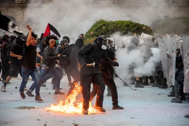 En San Cristóbal de las Casas, Chiapas, alumnos de la Escuela Normal Indígena Intercultural Bilingüe Jacinto Canek se enfrentaron con policías municipales cuando estaban por concluir su marcha.