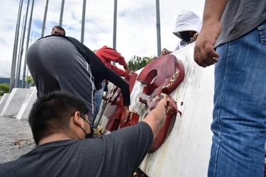 En un video difundido en las redes sociales se puede observar cuando dos sujetos le prenden fuego al monumento a los 43 estudiantes de Ayotzinapa.