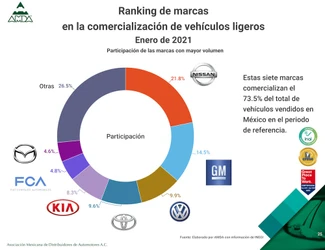 Nissan se adueño de los tres primeros sitos de los vehículos más vendidos en México en enero del 2021, mientras que General Motors, Volkswagen y Toyota, junto a la japonesa, fueron las marcas que dominaron el mercado automotriz nacional.