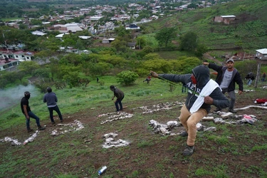 En la protesta, en la carretera a Apatzingán, dijeron que se defenderán contra el grupo delictivo ‘Cárteles Unidos’. “Estamos cansados de extorsiones”.