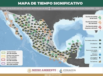 No se prevé que toque territorio nacional. Entre el 3 y 6 de julio, intensas precipitaciones en Chiapas, Oaxaca, Guerrero, Michoacán y su de Veracruz.