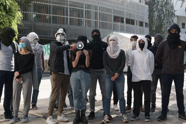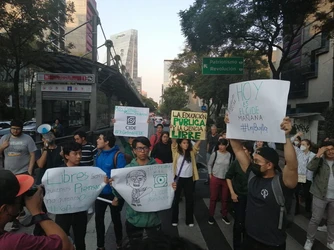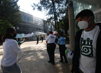 Tras 5 horas de espera, alumnos del CIDE retiraron una mesa que instalaron en la sede del Conacyt para hablar con su titular, María Elena Álvarez-Buylla.