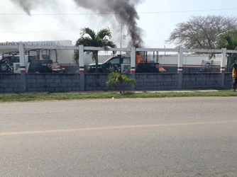 Lanzaron piedras a las instalaciones policiacas y prenden fuego a una patrulla de la Fuerza Civil