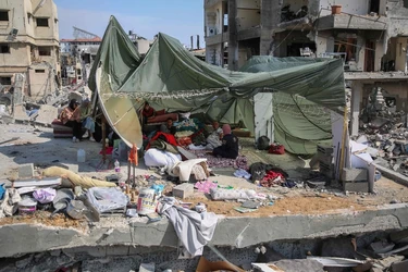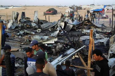 A primera hora del día, un ataque aéreo israelí alcanzó un campamento de tiendas de campaña situado en el interior de un hospital en el centro de Gaza.
