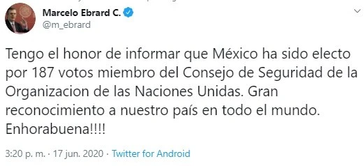 Recibió 187 votos a favor. Será la quinta ocasión que México forme parte de esa instancia. La primera fue en 1946, la segunda en 1980-1981, la tercera en 2001-2002 y la cuarta en 2009-2010.