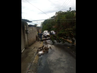 Uno de los muros se derrumbó sobre tres vehículos en el centro de la ciudad. No se reportaron lesionados. Dos automóviles se quedaron varados por acumulación de agua.