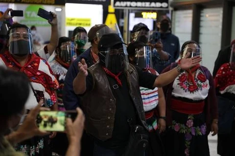 El 'Escuadron 421' llegó a la CDMX. Activistas, simpatizantes y grupos de indígenas esperaban a los zapatistas en el aeropuerto internacional.